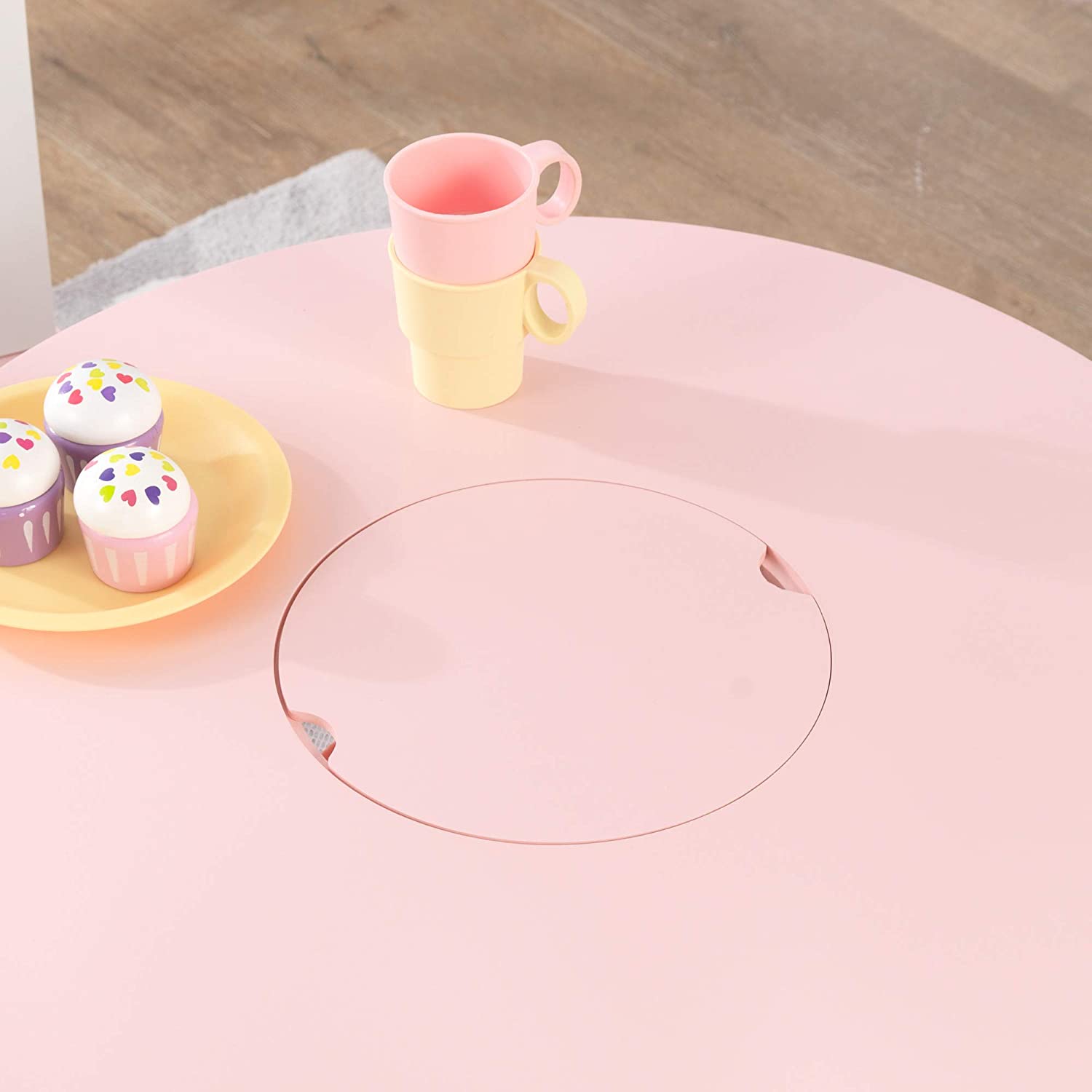• Extra Helpings: As an added bonus, the circle in the middle of the table lifts up to reveal an attached mesh bag for storage. Keep play food or dishes, art supplies, toys and more here!