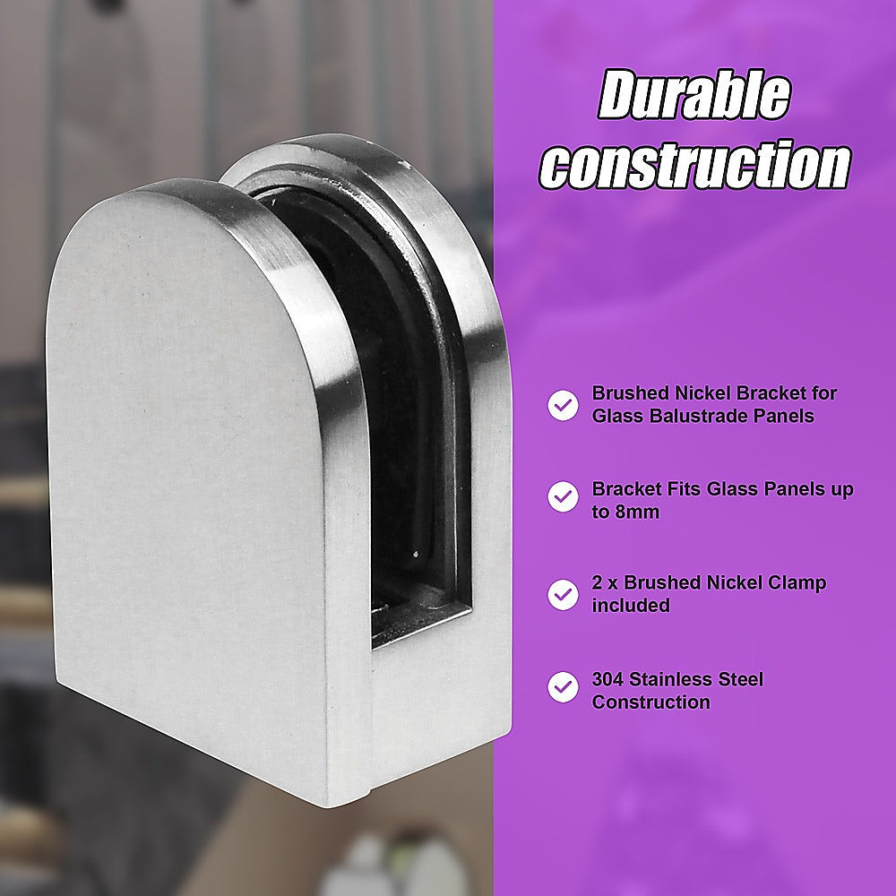 Brushed Nickel Bracket for Glass Balustrade Panels - Set of 2