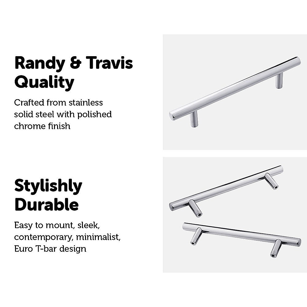 Give your kitchen or bath the Euro chic you've always dreamed of with these cabinet drawer pulls by Randy & Travis Machinery. Done in stunning chrome, these sleek contemporary pulls will create a minimalist vibe that is so on-trend today.