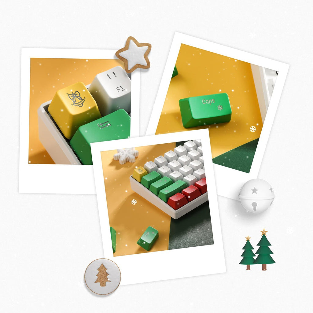 After almost a year of painful waiting, the Christmas edition of the RK61 is once again available to everyone. Upgraded with a new color scheme, lovely laser prints of Christmas elements and warm white LED backlighting to surprise your holiday this year.