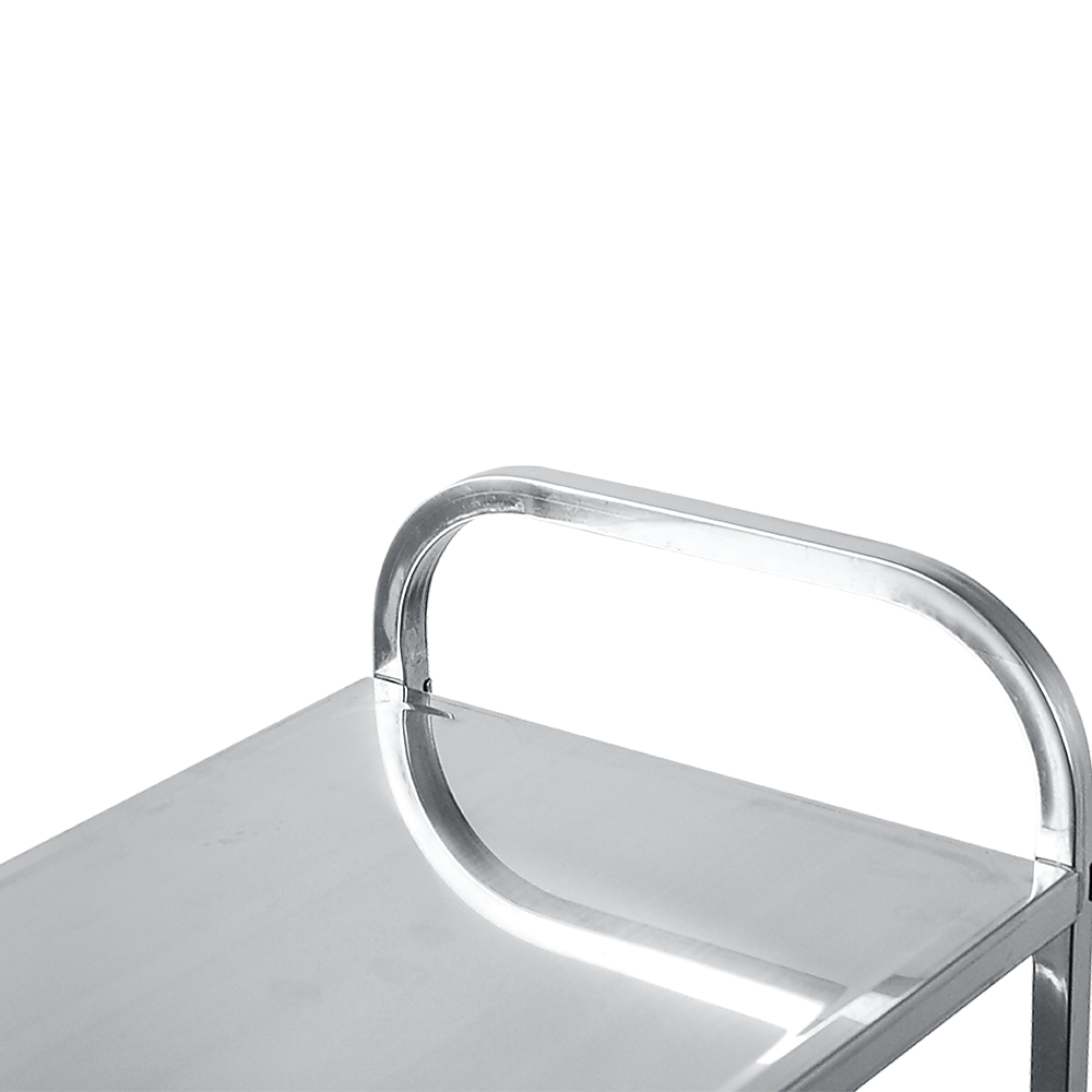 Its sturdy construction and locking wheels ensure against accidental bumps knocking food and dishes to the floor. Two handles provide extra control. With three tiers of shelves, you can feed a crowd – or clean up after them without time-wasting return trips, saving you or your waitstaff valuable time. Don't waste a minute more on extra trips to the kitchen. Order your kitchen trolley today!