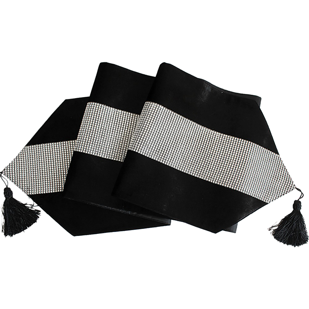 There's nothing like classic black and grey accessories to give your dining table a touch of class. With this stunning set of tasselled velvet placemats and matching table runner, you'll turn a plain dining table into a tablescape that would be completely at home in a high-end design magazine. Pair it with silverware, candles, and crystal, and you'll have the perfect setting to showcase your next gourmet dinner. Just add candles and a bottle of wine, and you'll have an evening to remember, whether it's a dinner party with friends or a romantic date night at home.