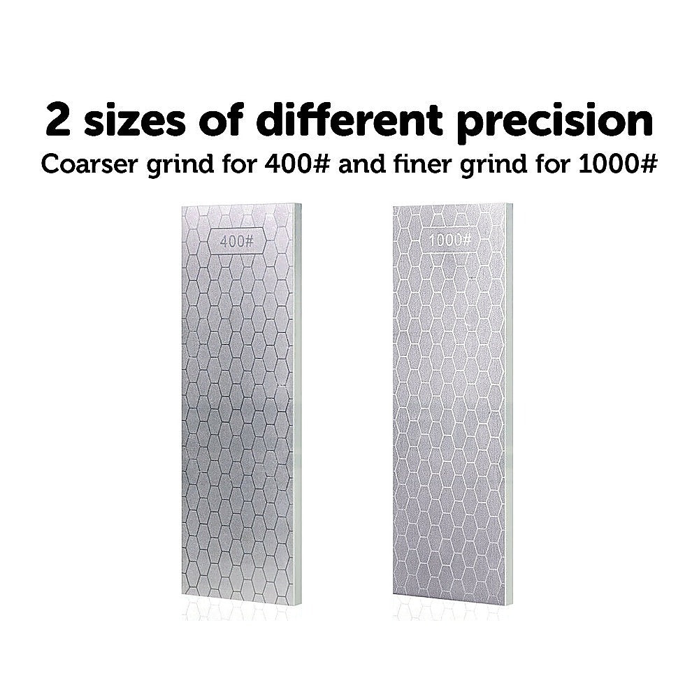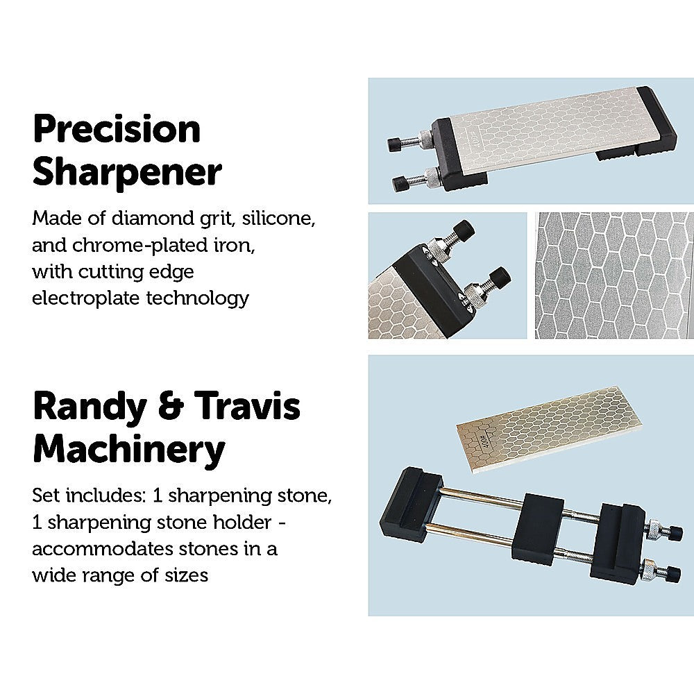 If you're a serious cook, you know how important a sharp knife is to all your kitchen tasks—from chopping to slicing. This double-sided diamond knife-sharpening stone from Randy & Travis Machinery is just what you need to keep your knives in peak working order. With one side with 400-grit for a coarser grind and the other with 1000-grit diamond, for a finer grind, you can sharpen your knives with exact precision.