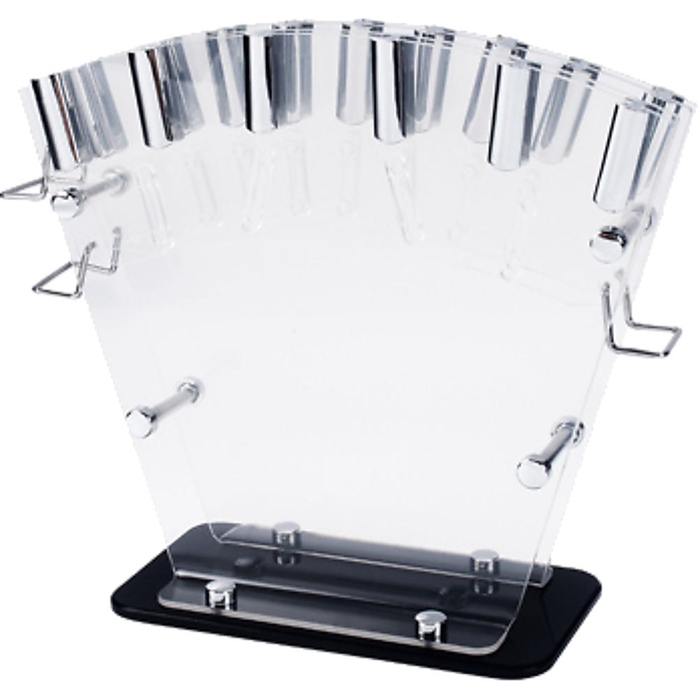 - Material: stainless steel (blades) and acrylic (storage stand)