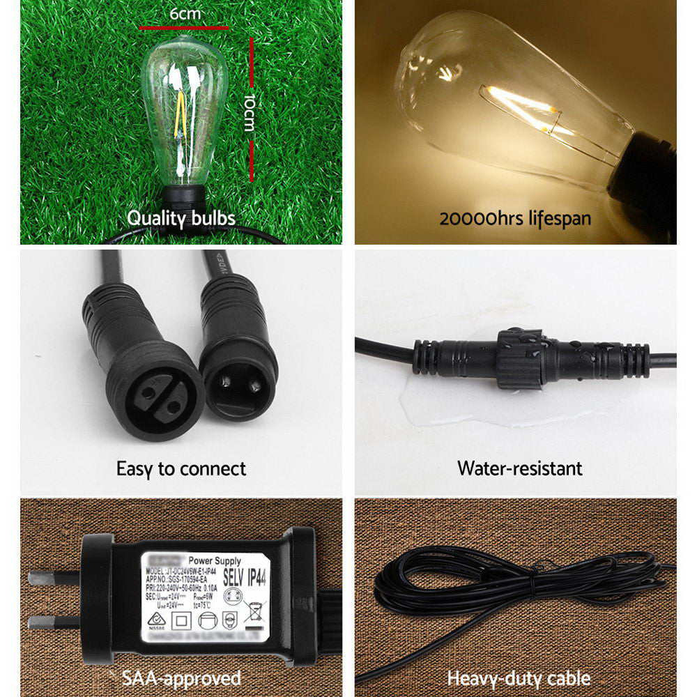 Jingle Jollys 68m 70 LED Festoon Lights String Lighting Wedding Party