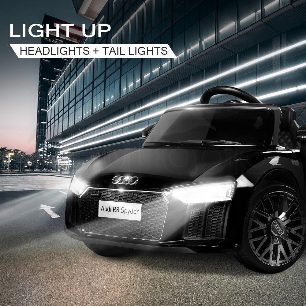 The R8 Spyder features realistic engine sounds, and boasts many features for your child to enjoy such as forward and reverse motion, a horn, and various music modes. The built-in songs are accompanied by flashing lights; and an MP3 player or smartphone can even be plugged to play your child's favourite music!