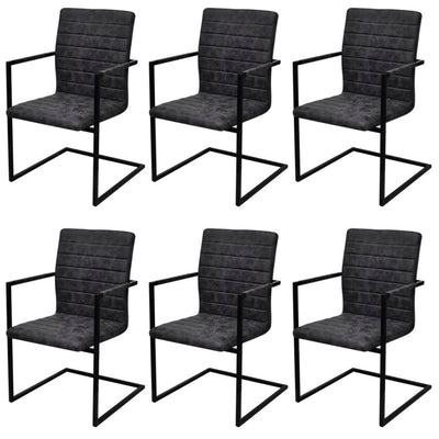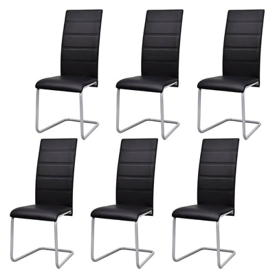 vidaXL Cantilever Dining Chairs 6 pcs Black Faux Leather