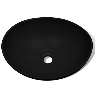 vidaXL Ceramic Bathroom Sink Basin Black Oval