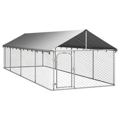 vidaXL Outdoor Dog Kennel with Roof Steel 1.84 m²