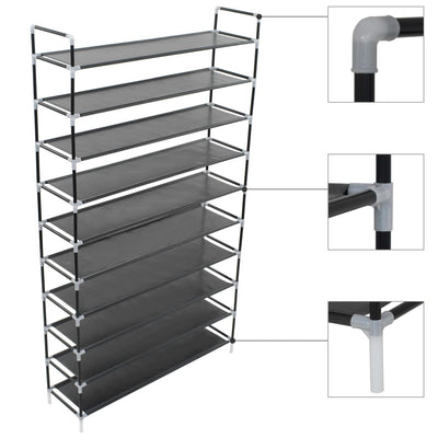 vidaXL Shoe Rack with 8 Shelves Metal and Non-woven Fabric Black