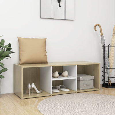 vidaXL Shoe Storage Bench White and Sonoma Oak 105x35x35 cm Engineered Wood