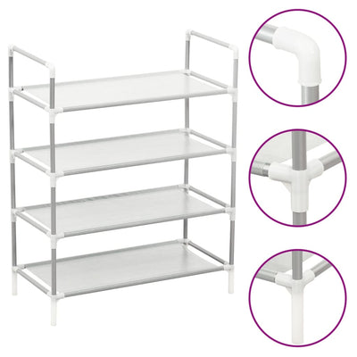 vidaXL Shoe Rack with 4 Shelves Metal and Non-woven Fabric Silver