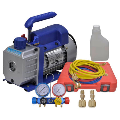 vidaXL Single Stage Vacuum Pump with 4-Way Manifold Gauge Set