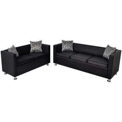 vidaXL Sofa Set Artificial Leather 3-Seater and 2-Seater Black