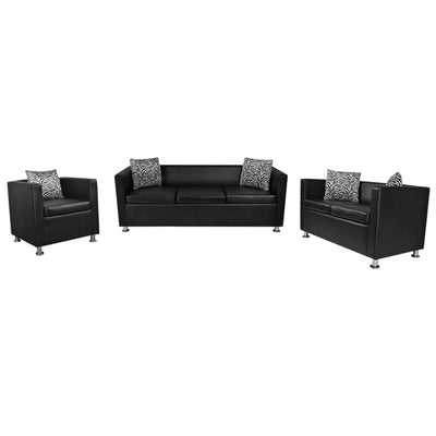vidaXL Sofa Set Artificial Leather 3-Seater 2-Seater Armchair Black
