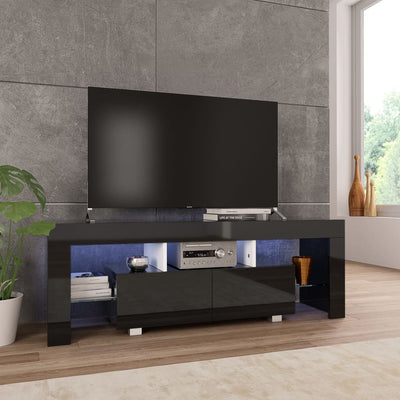vidaXL TV Cabinets with LED Lights 2 pcs High Gloss Black 60x35 cm