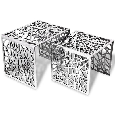 vidaXL Two Piece Side Tables Square Aluminium Silver