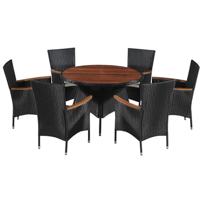 vidaXL 7 Piece Outdoor Dining Set Poly Rattan and Acacia Wood Black