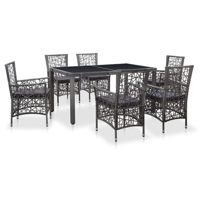vidaXL 7 Piece Outdoor Dining Set Poly Rattan Grey
