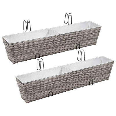 vidaXL Balcony Trapezoid Rattan Planter 2 pcs Black