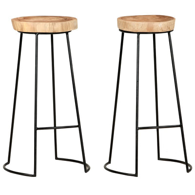 vidaXL Bar Stools 2 pcs Solid Acacia Wood and Stainless Steel