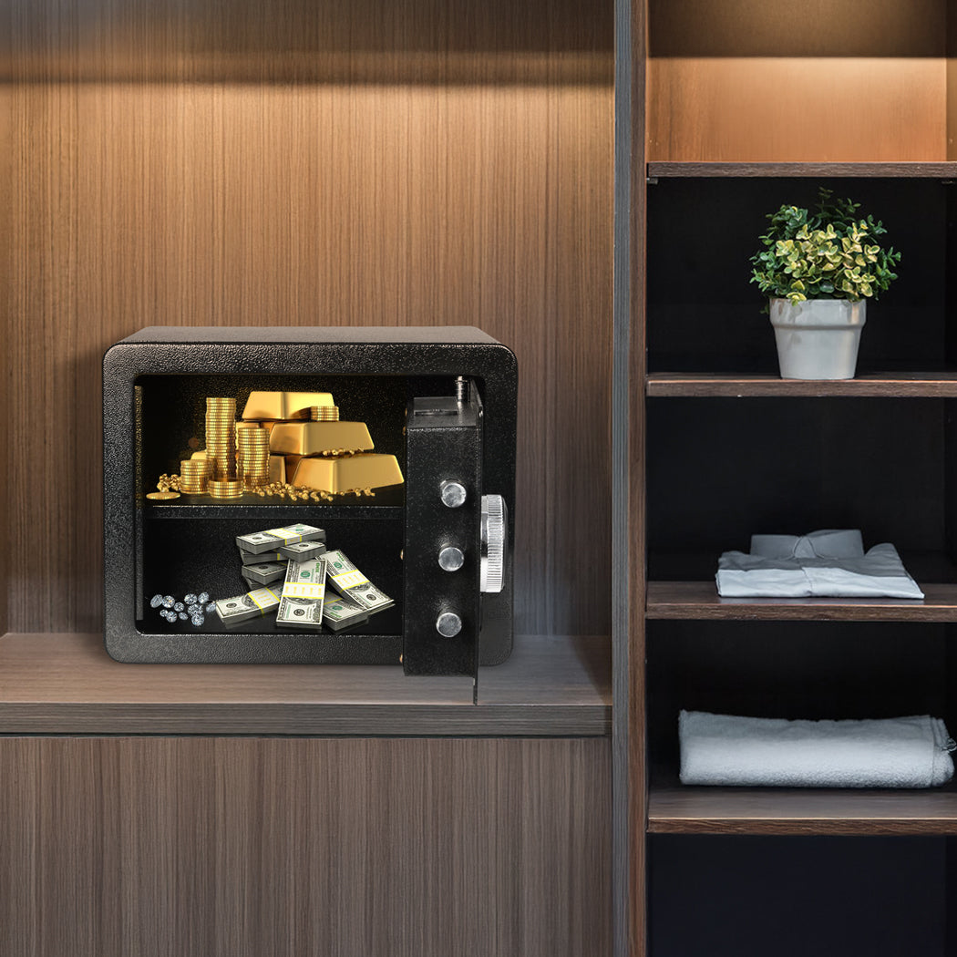 Protect your valuables with this secure digital safe – the perfect safe box for cash, documents, jewelry, and more! Whether you're looking for a small safe to store your money, a gun safe to keep firearms secure, or a fireproof safe to protect important documents from fire damage, this security box has you covered. It features an easy-to-use key safe system and a robust lock box design, making it an ideal choice for home, office, or travel. Keep your peace of mind knowing your most valuable items are locked up tight in this durable, fireproof document box. This money safe is a must-have for anyone who values security and protection – get yours today and experience the ultimate in safe storage!