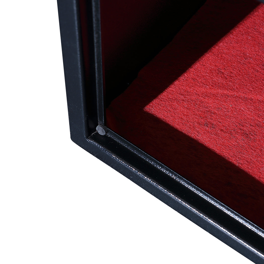 The safe is made of strong solid, pry-resistant steel with two enhanced live-door bolts and pry-resistant concealed hinges. Perfect for keeping your basic household things secure, like cash, documents, jewellery, wallets, passports, keys, etc.