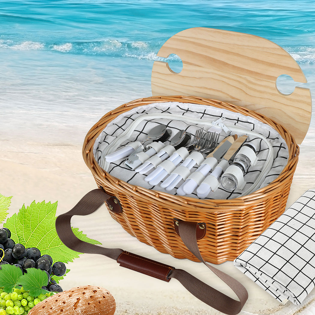 Throw together some sandwiches and meet all your friends in the park for a delicious brunch. Impress them with your new wicker picnic basket with blanket. Turn the basket lid into a mini-table.